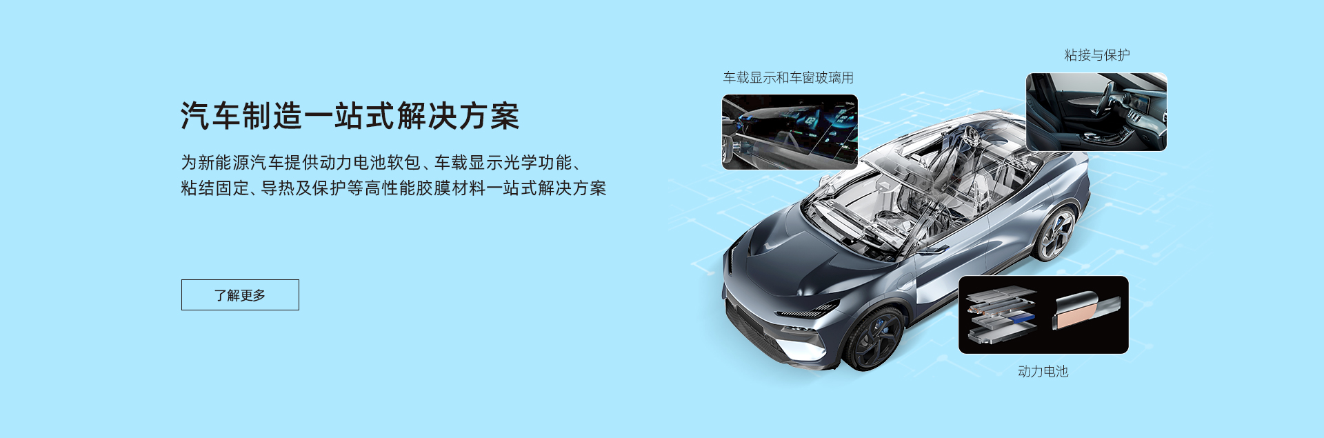 致力于為汽車制造、消費電子、智慧顯示端口等行業(yè)客戶提供包括新能源材料、電子功能材料、光電顯示材料、有機(jī)硅材料在內(nèi)的產(chǎn)品研發(fā)、生產(chǎn)、銷售于一體化服務(wù),建立了專業(yè)的市場營銷與技術(shù)服務(wù)團(tuán)隊,為客戶提供高性能膠膜材料一站式解決方案。